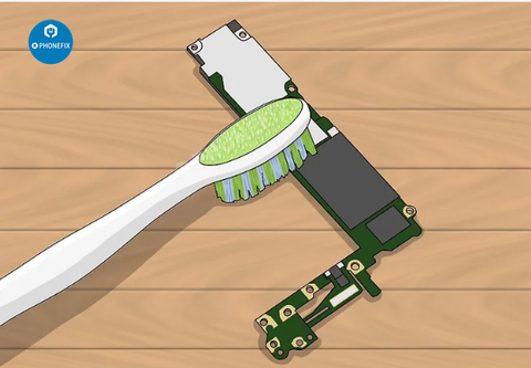 Use a soft brush (like a toothbrush or detailing brush) to gently scrub away any corrosion and water residue on the logic board and other components.